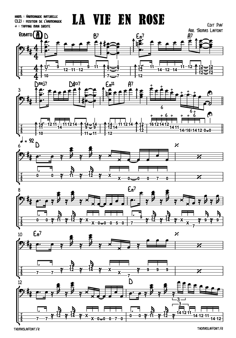 Transcription complète de la partie de basse de mon arrangement de La Vie en Rose (Edith Piaf).